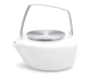 Die Porzellanteekanne wirkt durch den Edelstahlbügel und -deckel elegant. Der herausnehmbare Filter ermöglicht ein einfaches Aufbrühen mit frischem Tee.